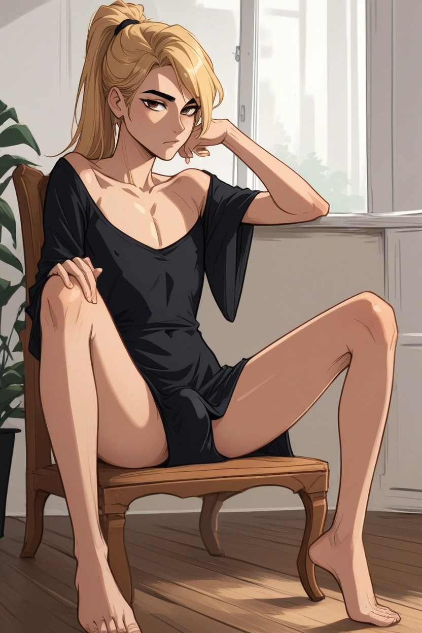Pferdeschwanz, Beautiful, Black Eyebrows KI Porno