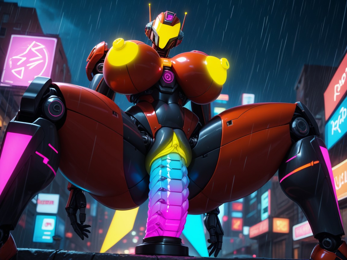 robot, colorful, rgb lighting, detailed body, robot arms, robot legs, robot body, heavy armor, huge armor, dark armor, feminine legs, long legs, lean body, body, waist, waist, colorful glowing accents, colorful glowing platform stiletto heels, huge colorful glowing nipple rings, silicone tits, silicone pussy, hyper pussy, bulging pussy, hyper pussy, (huge pussy lips:1.3), hyper huge clit, hyper big clit, (hyper puffy swollen labia:1.3), puffier, (hyper excessive pronounced puffy swollen labia:1.3), puffy fat vagina, extra thick vulva, (hyper big vulva:1.3), fat pussy, fat vulva, riding huge dildo, (enormous dildo:1.3), glowing dildo, bumpy dildo, too big dildo, too massive dildo
