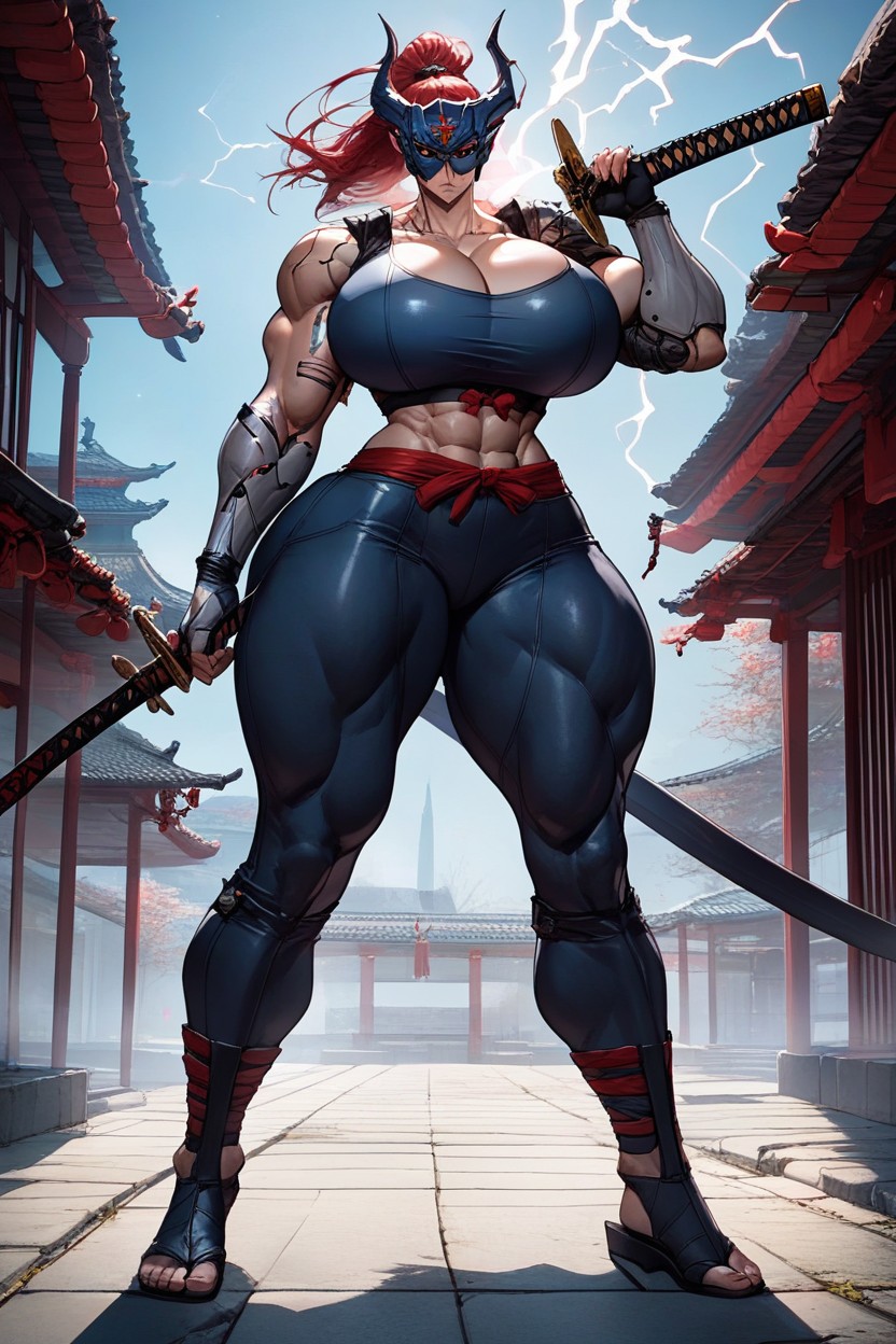 Massive Tits, Cul Énorme, Blue Lighting Katana Porno IA