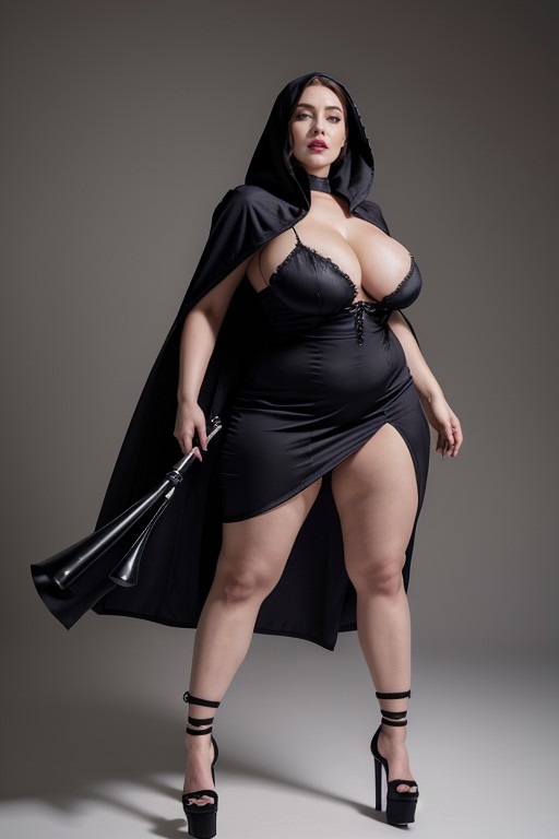 violet parr, wide curvy hips, high angle view, perfect feet, bare foot, (high heel thigh platform:1.3), full body, stance, curvaceous vixen goddess, a ferocious undead woman with pale grey skin, horror monster woman, pale grey skin, powerful pose, (puffy lips:1.3), visible bones, from head to shoes view, thick lips, massive lips, deep cleavage, ferocious undead female, undead woman, eyes, witch silk, her powerful pose steady and dominant, (saggy thighs: 1.3), thigh gap, she wearing a full body hooded cloak with tattered silk dress, (defined quadriceps: 1.3), high waist