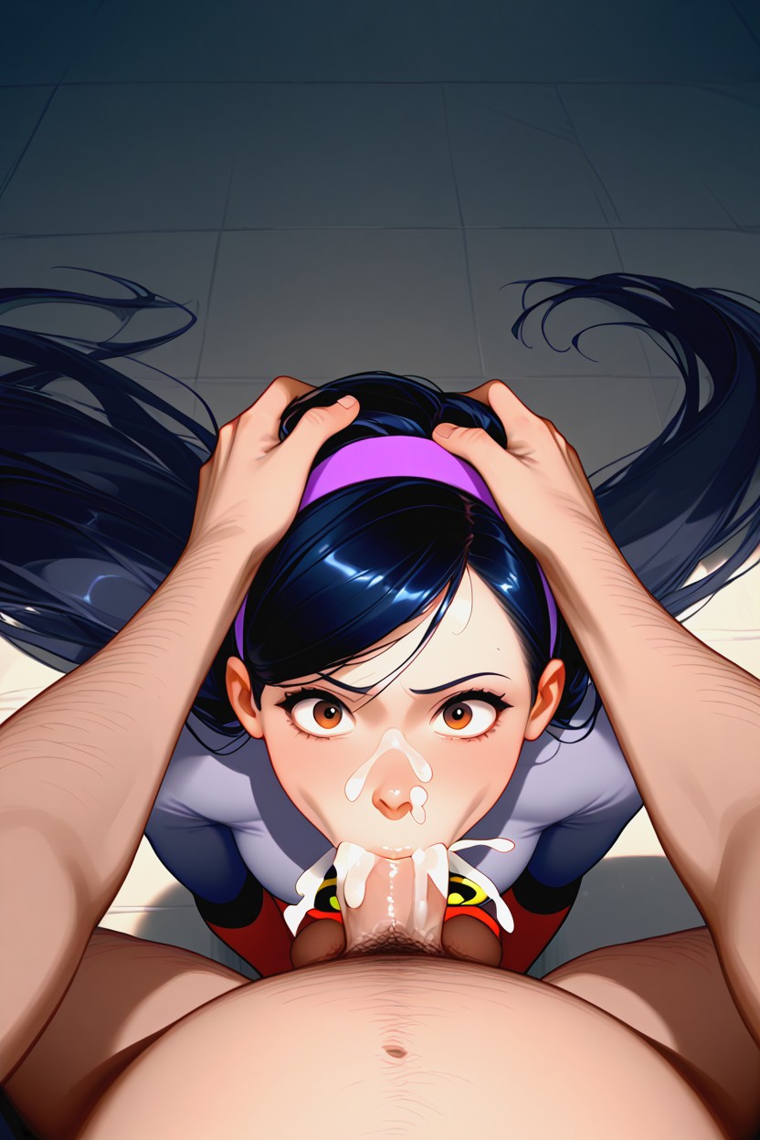 violet parr from the incredibles, purple headband, very long shiny hair, extremely long hair, hair flowing to the floor, hair spread everywhere, deep throat, dimly lit, big brown eyes, mouth wide in shock, eyes wide in shock, surprised, deepthroat, pov, very fat bird man pushing her head for a deep deepthroat, hair grab, hair pull, puffy cheeks, pounding movement, lots of color, colorful, hands on head pushing it into crotch, pov from fat yellow feathered bird man, big fat belly on bird man, blubbery belly on bird man, cum spilling out of mouth, cum dripping down cock, cum dripping down balls, cum shooting out of nose, cum shooting out of all face holes, extreme cum pressure, cum flying out of ears, cum shooting out, extremely high pressure cum shot, blowjob from pov of big bird from sesame street