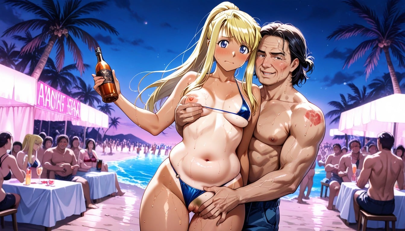 Beach, Man Spreading Her Pussy Lips, Palm Trees Porno IA