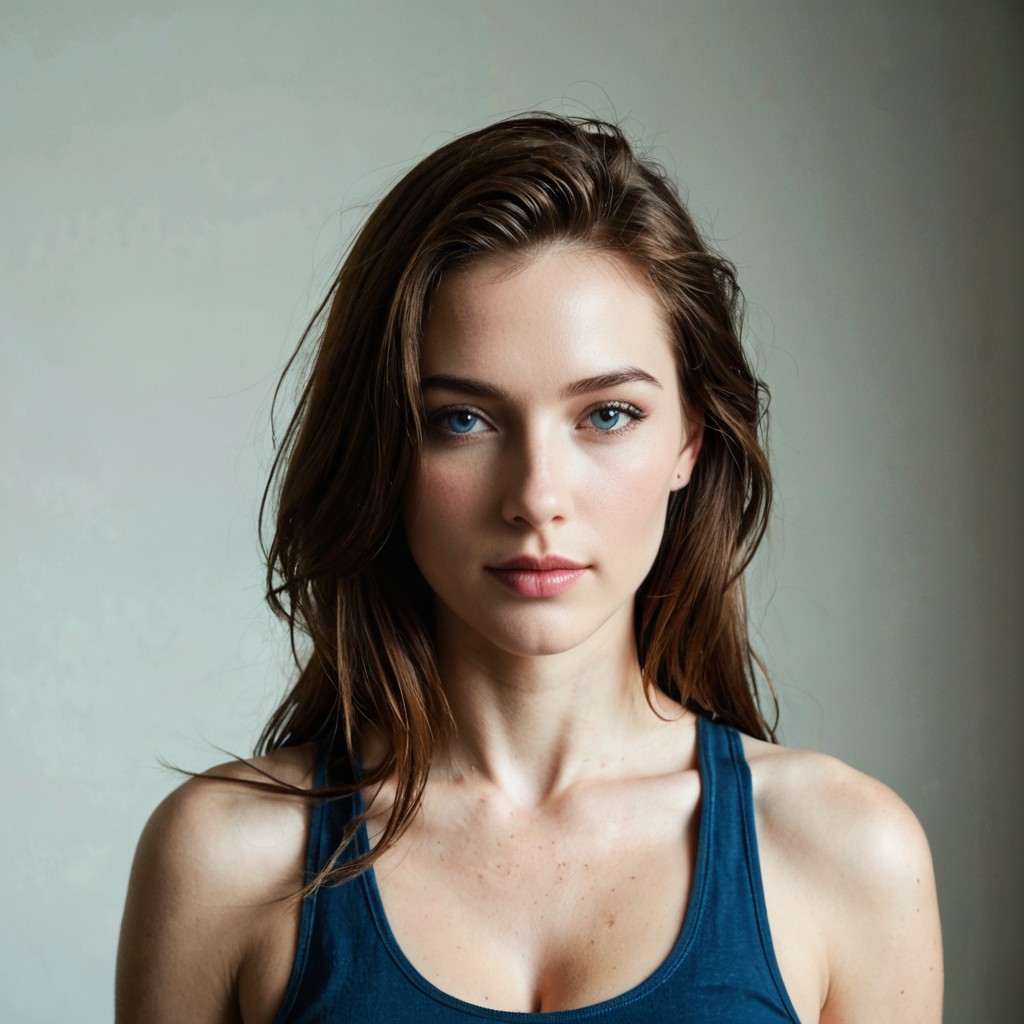 Débardeur, Cheveux Bleus, Solo Porno IA