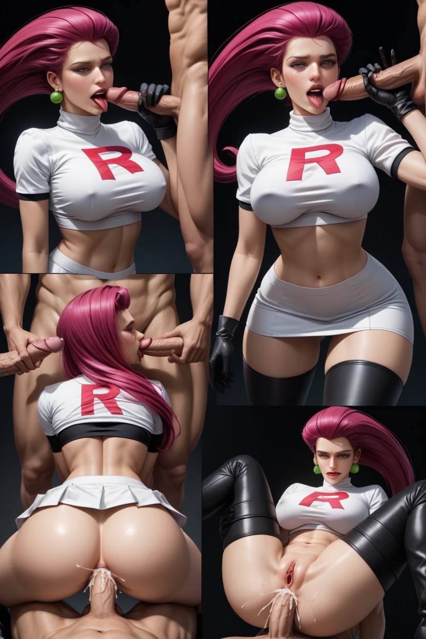 jessie from pokmon, long magenta hair, styled in a dramatic side swept curve, sharp violet eyes, pale skin, tall and build, confident and sexy expression, white cropped top, white skirt, long black gloves, black thigh high boots, green spherical earrings, big ass, multiple views, blowjob, horny, orgasm face, face, cum everywhere, carry sex, cowgirl, full nelson, gang bang, laying on stomach, licking penis, mating press, missionary, nipple sucking, anal doggystyle, anal missionary, cowgirl, doggystyle, missionary, pronebone, spead legs sex, spitroast, split sex, spooning sex, tit fuck, tits on glass, deepthroat, double handjob, double penetration, scissoring, tongue blowjob, orgasm, ahegao, confused face, embarrassed, eyes half closed, grinning, horny, mischievous, rolling eyes, sad, smiling mouth open, smug expression, tired face, wink, cum everywhere, bottom up, front view, rear view, side view, top down, view from below