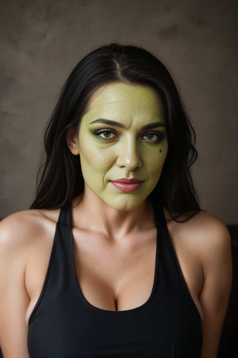 Green Makeup, Wrinkles On Her Face, Super Wide Super Thick Head AIポルノ