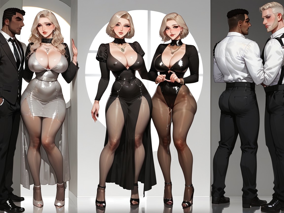 (housewife stands by the laying african man:1.3), housewife, milf, diamond face shape, side-parting hair, wearing tight grey dress, massive ass massive breasts, cleavage, necklace, club, black high heels, extra tight pantyhose, extra long pussy lips, erect nipples visible through dress, juice dripping from vagina, light grey high heels, standing, victory face, reset all previous prompts, club, african man is half naked, laying, penis is ejaculating, sleeps, mafia boss