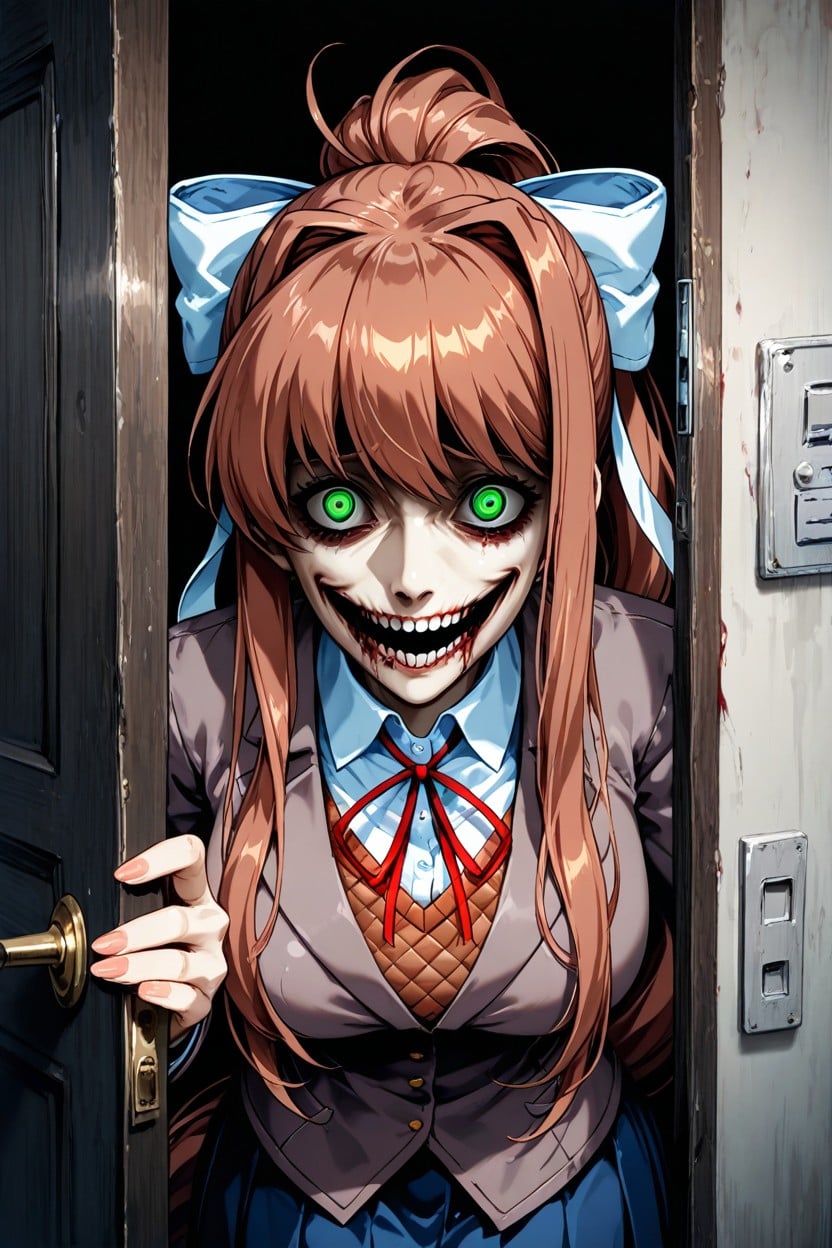 Style Horror Movie Ths, Corrupter, Monika From Doki Doki Literature Club AIポルノ