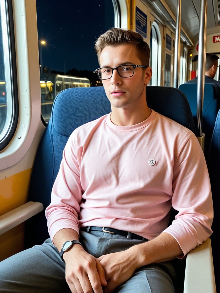 18+, Wearing Pink Shirt, On Train AIポルノ