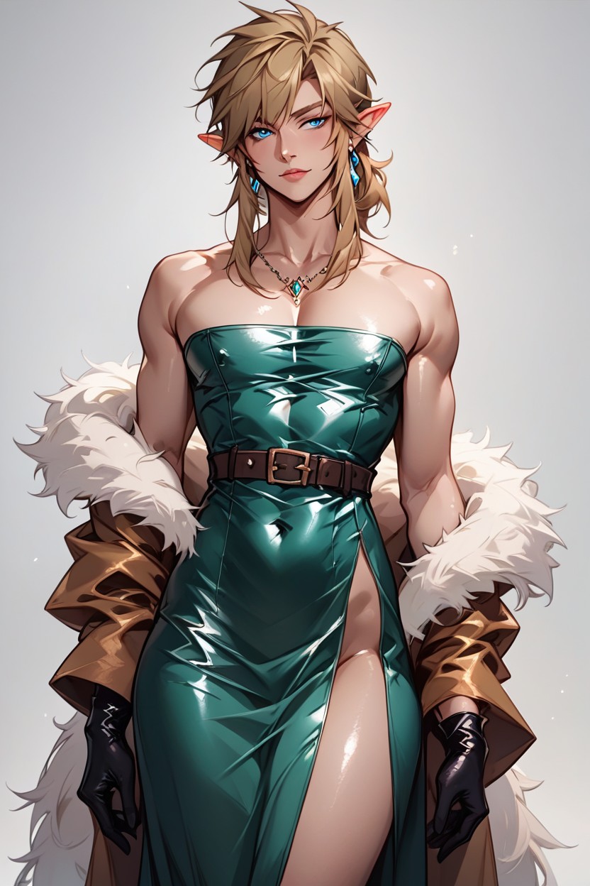 실크 드레스, 웨이스트 샷, Bright Green Silk Dresss AI 포르노
