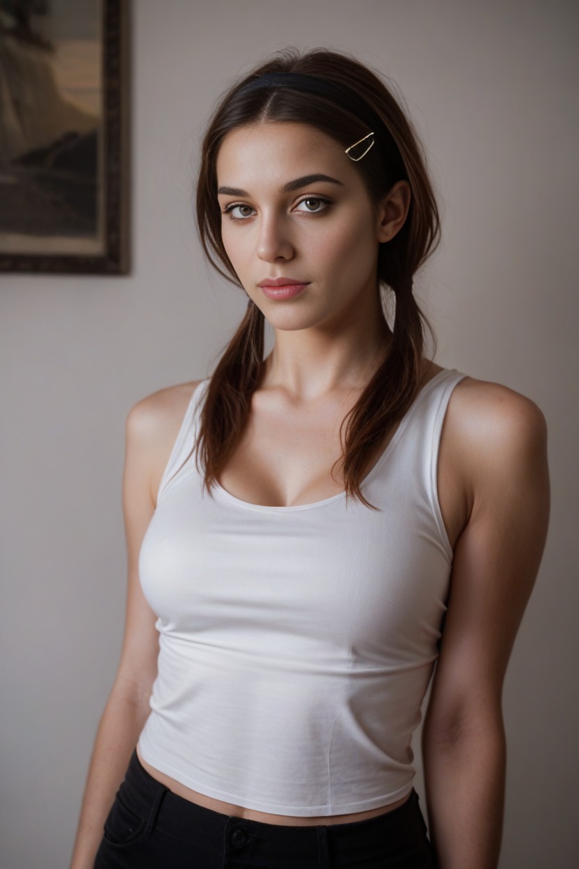 마른 체형, 머리핀, 민소매 티셔츠 AI 포르노