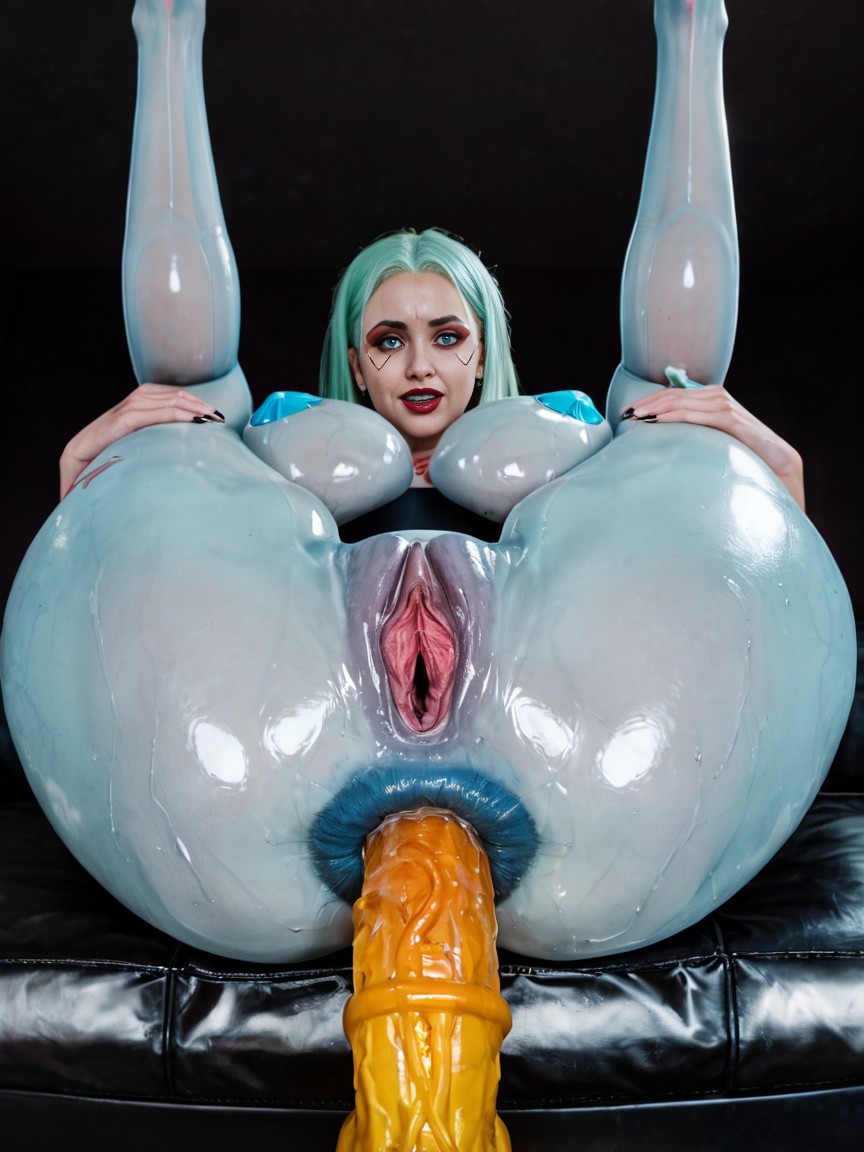 rebecca cyberpunk edgerunners, hyper thighs, sweaty body, legs widening, blue anus, swollen anus, spreading anus, blue anus, blue equinegenitalia, accurate equinevagina, blue pussy, hyper enlarged equinepussy, hyper detailed equinegenitalia, equineclitorus, massive pussy, prominent asshole, anal juices, professional pornstar, oversided proportionate bodies, proper body proportions, donut shaped asshole, monster pussy transformation, natural breast, huge veiny breast, strong back, huge hips, large hips, transparent bodysuit tight, beautiful face, perfect face, hyper veiny tits, blonde hair, latex, red fishnets, tattoos, huge yellow dildo, dildo in anus, anal, translucent teardrop bikini bottom, wide hips, super waist, (puffy swollen labia:1.3), puffier, (excessive pronounced puffy swollen labia:1.3), puffy nipples, thick varicous veins, hyper swollen pussy, oversided hyper vagina expansion, pussy growth, pussy expansion, pov rebecca cyberpunk edgerunners, growth, stretching hyper pussy