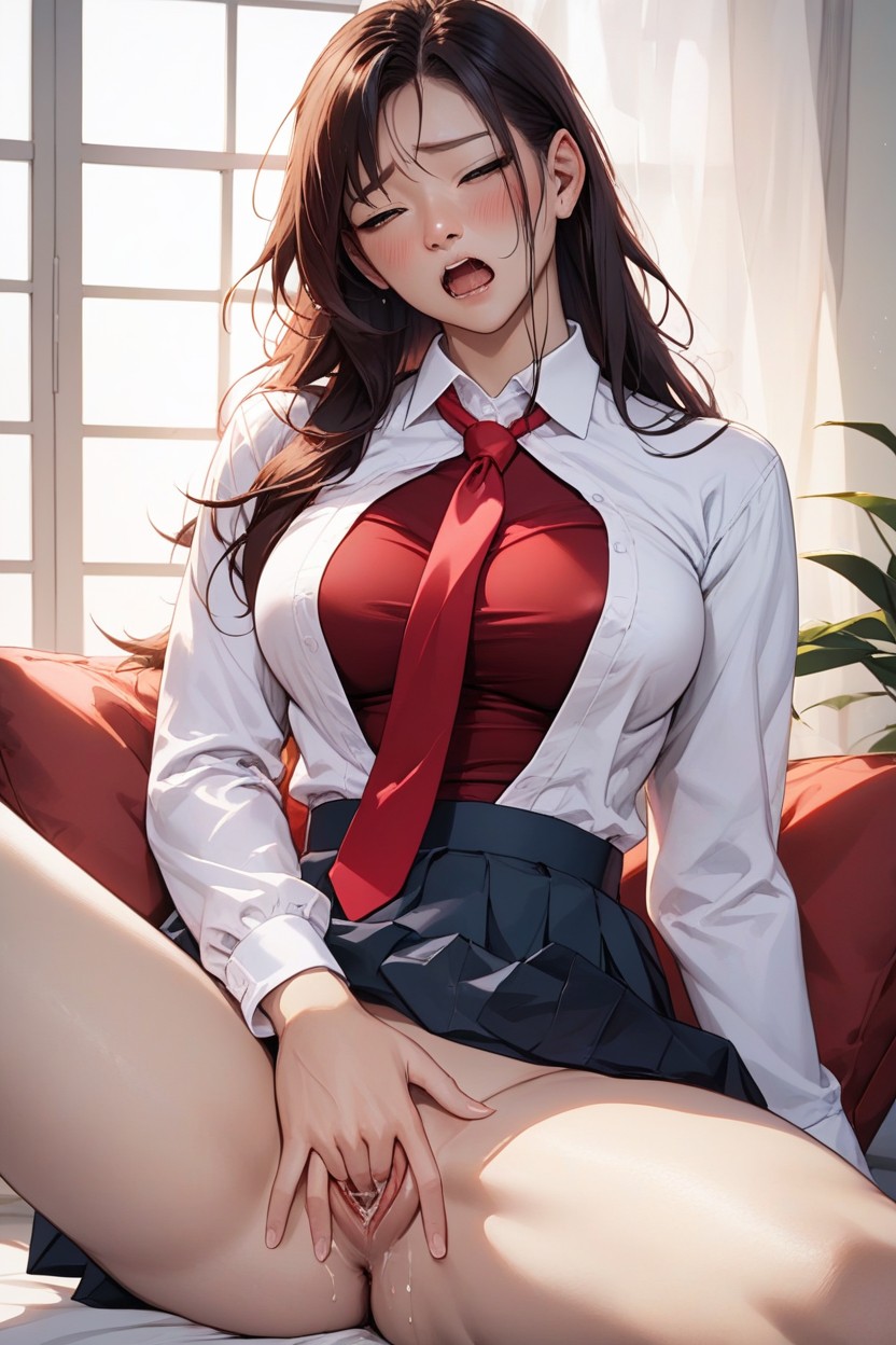여성 자위, 중간 가슴, 열린 옷 AI 포르노