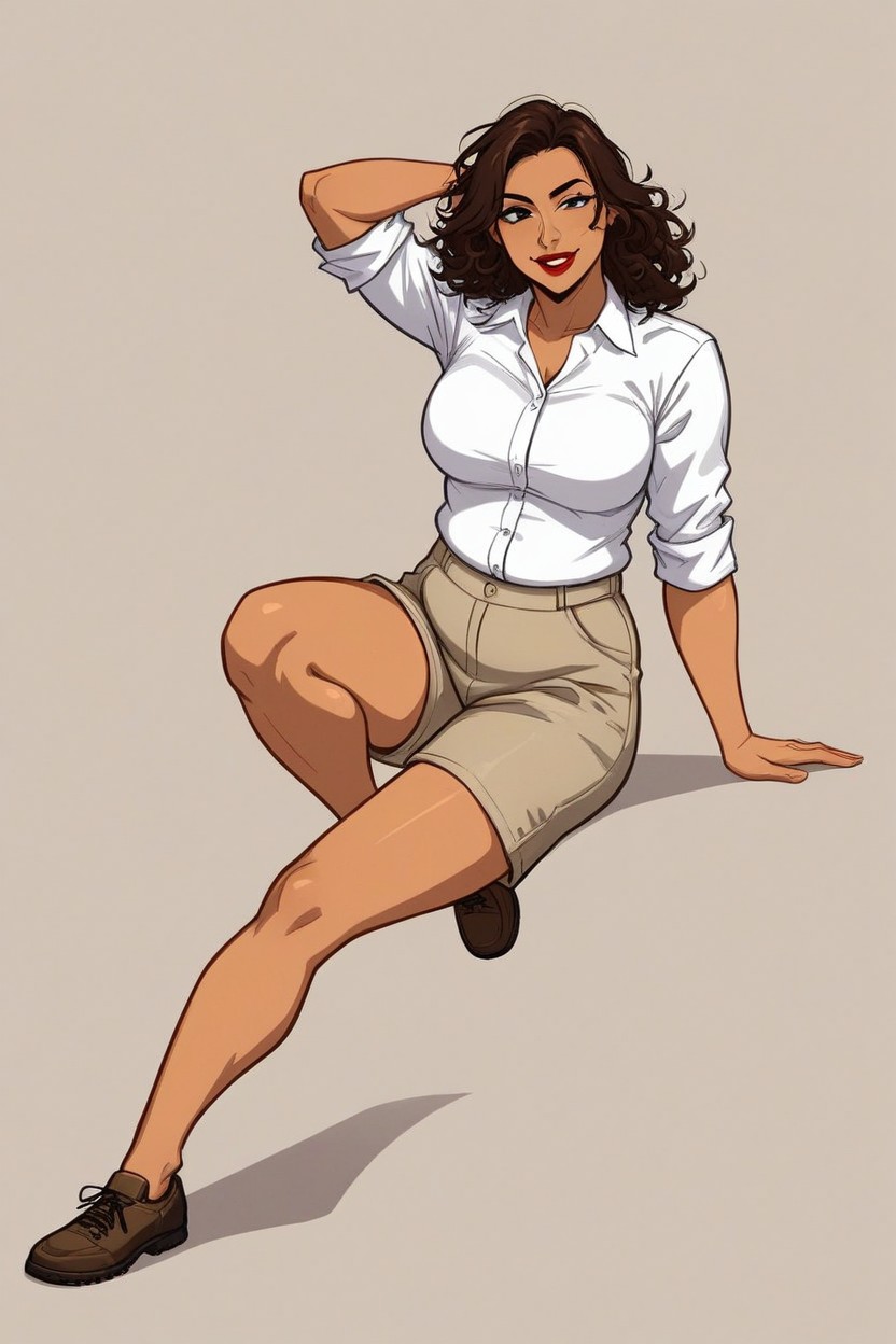 20+, White Collared Shirt With Rolled Sleeves, Right Hand Behind Head Running Fingers Through Hair AI 포르노