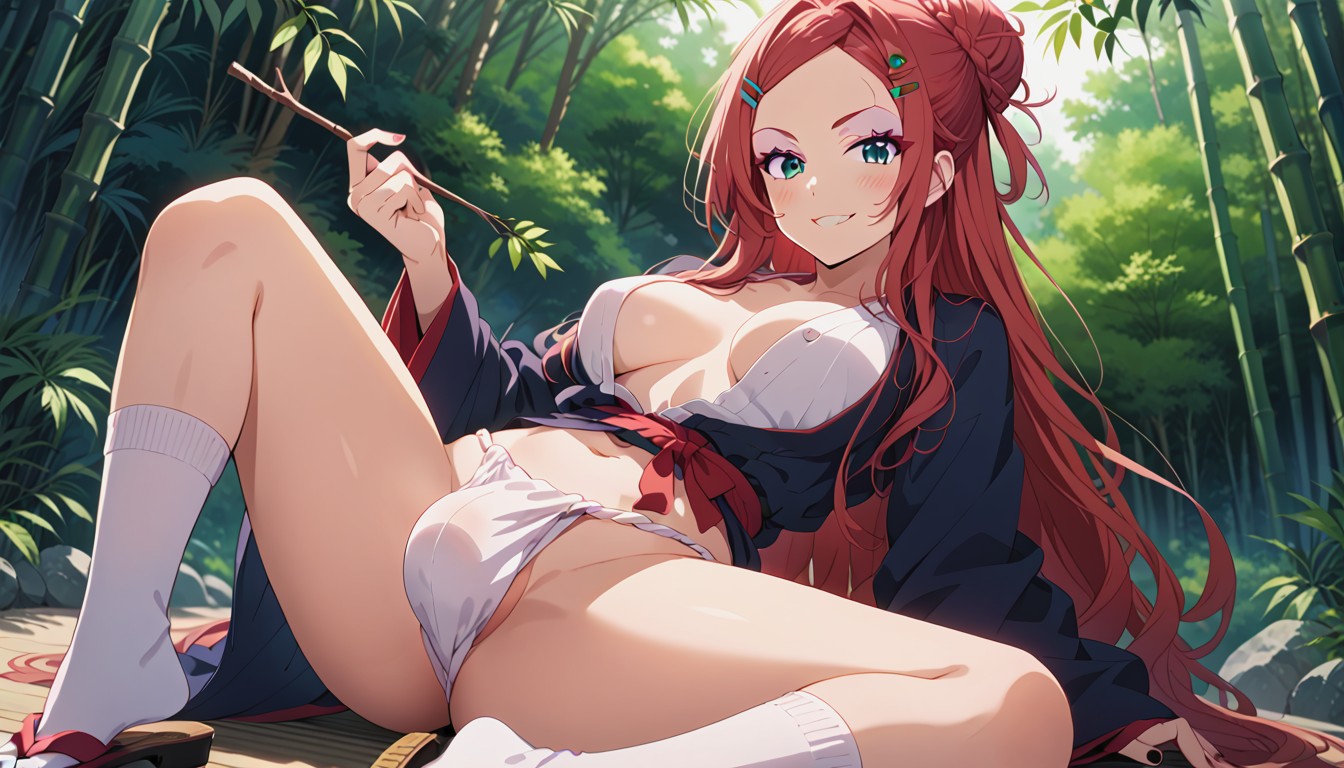 마른 체형, 작은 엉덩이, Futanari; Smirk; Crimson Hair; Very Extra Long Hair; Top Bun; Sticks In Hair; Blush; Hairclip; Blue Eyes; Black Eyelash; Purple Eyeshadow AI 포르노