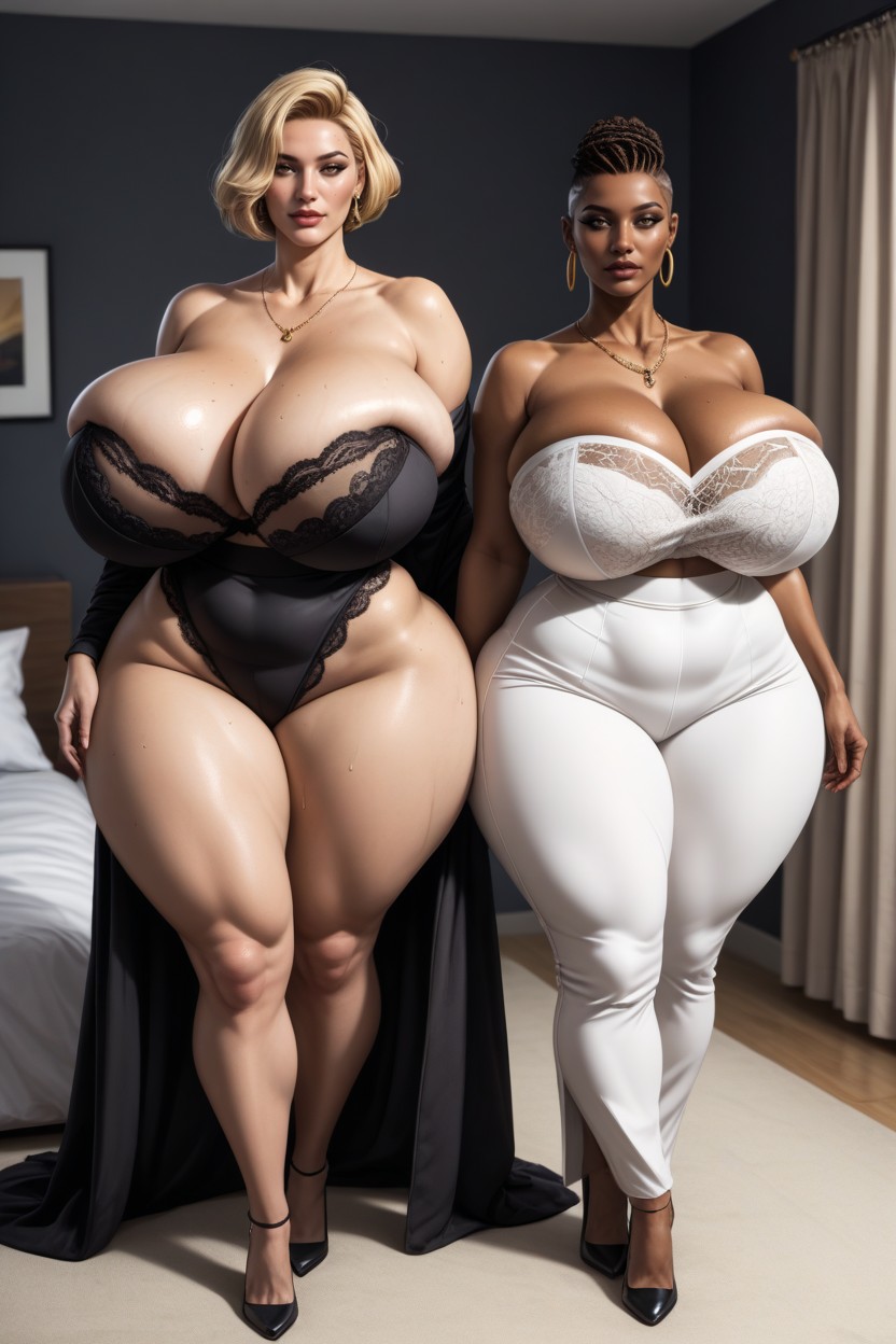 2명, Sweat A Lot, Dark Brown Skin Blonde Milf Striaght Hair AI 포르노