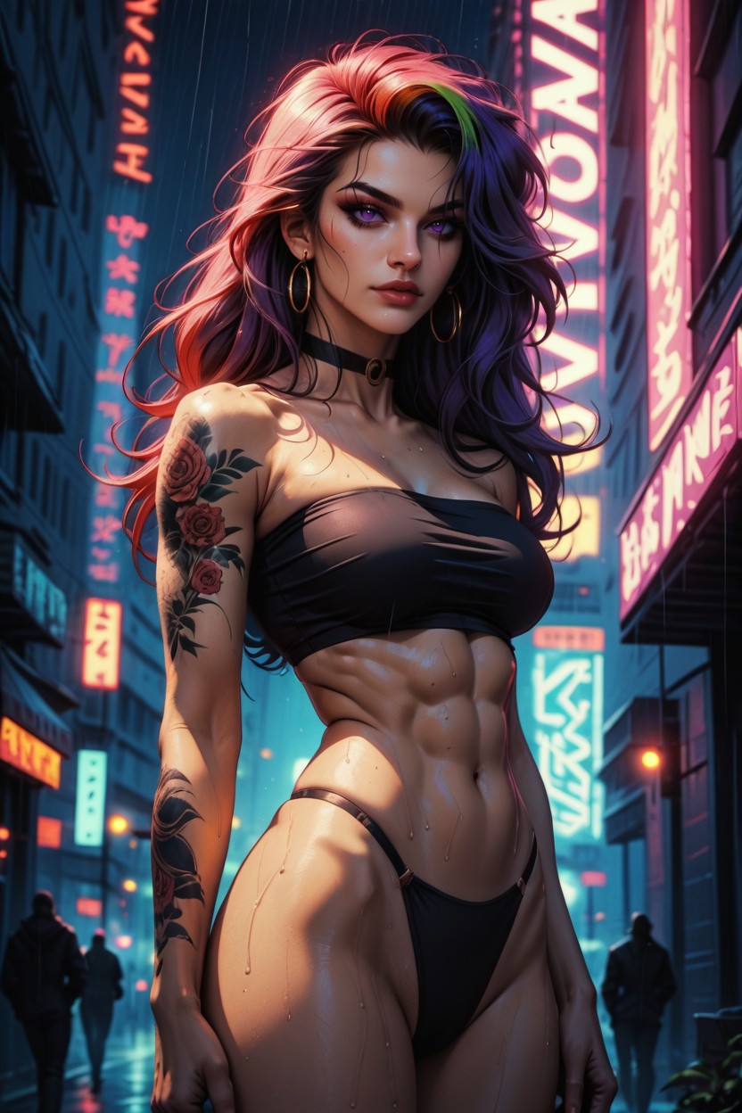 딱 맞는 체형, 서 있기, 보라색 AI 포르노