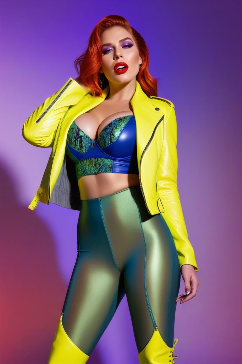 Intense Piercing Gaze, Hand Near Waist, Red Knee-high Platform Boots AI 포르노