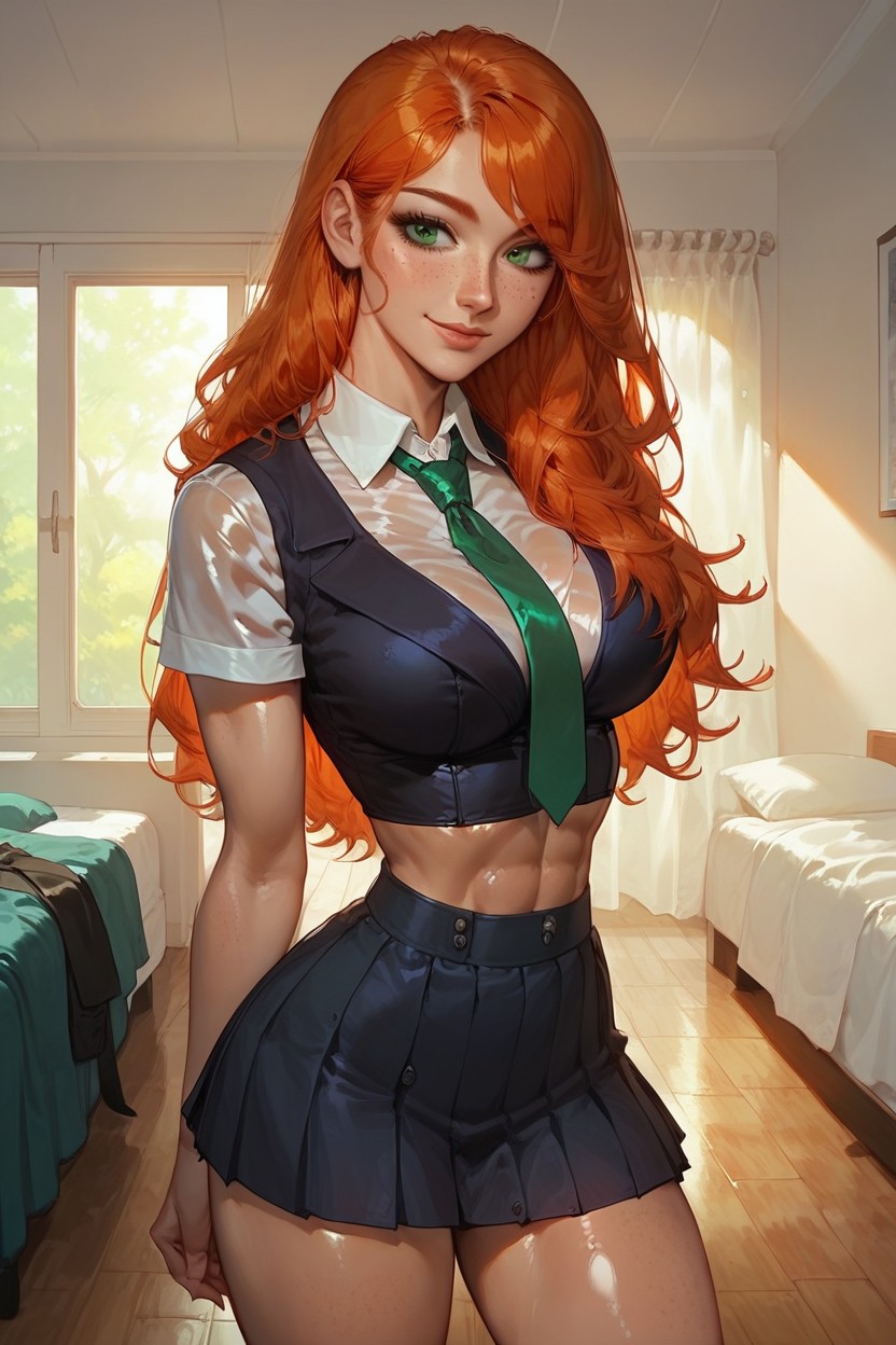 Bare Arms, Long Hair, Brilliant Green Eyes AI 포르노