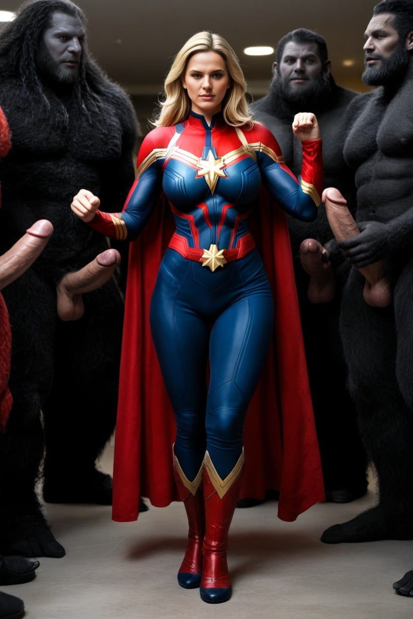 (Captain Marvel, relax pose. expression: 1.3), front view, blurred background, voluptuous woman, beautiful blonde, focus on hair, grabbing hair, one woman, full body, focus on full body shot, 3-meter tall hyper huge obesity Yeti monster giant with an hyper extremely thick dick. giant hairy Yeti monster's penis on woman's head, penis on head, multiple monsters, multiple penises, multiple penises wrapped in woman's hair.(3-meter tall monster: 1.3). 3-meter tall monster.3-meter tall monster.3-meter tall monster.