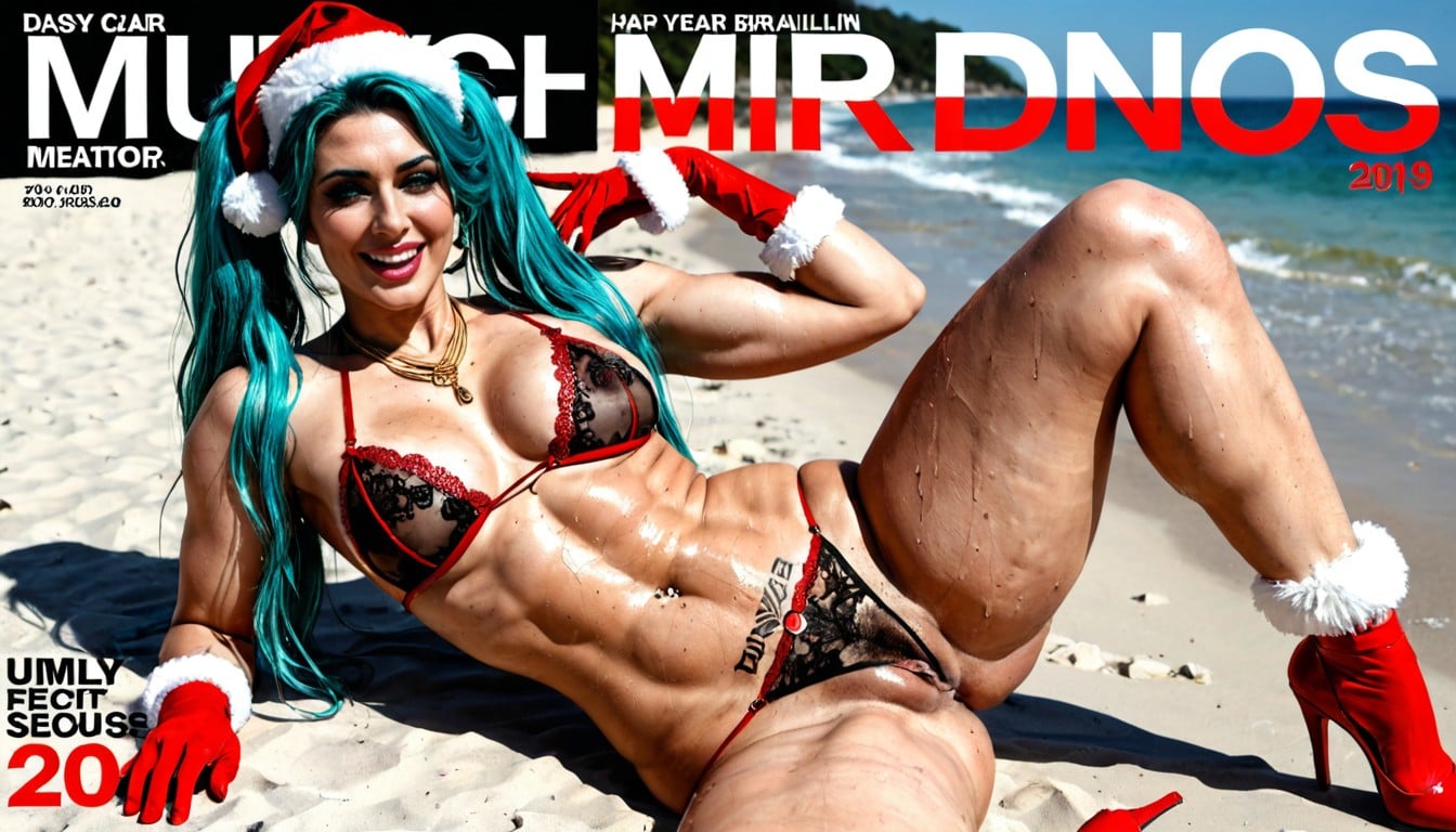 Hatsune Miku, blue hair and cowprint outfit, cowprint slingshot bikini, tight cowprint bikini panties, cowprint armwear, hd, uhd, ultra high resolution, high definition photo, hyper detailed skin, hyper detailed hair, hyperrealistic details, pores, slightly sweaty, rim lighting, hyperrealism, excessive photorealism, curvy waist, cellulite, stretch marks, soft and shaky fat, extremely wide hips, huge hips, hyper sized hips, (extremely thick thighs: 1.3), bright sunny day, brazilian miku, brazilian miku hatsune, miku hatsune, blue twintails, tanned skin, daisy dukes, beach, art dross, hdr, photographic, ultra realistic, back light, looking at viewer, hdr, octane rendering, photorealistic, anatomically correct, ultra high details magazine cover background, magazine cover, magazine page, magazine text