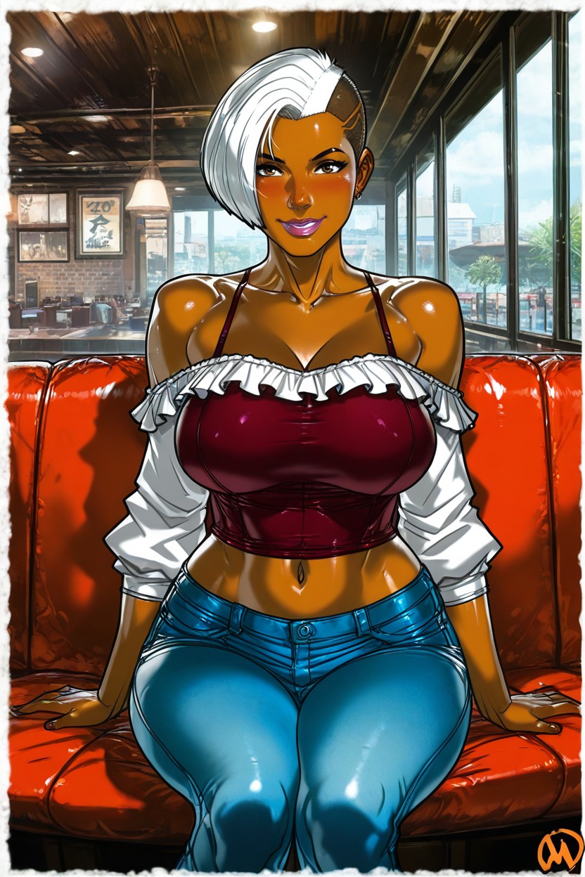 Jeans, 중간 가슴, Off-shoulder AI 포르노