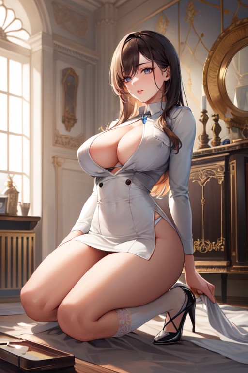 Gina Carano With A Thick Body Wearing Uniform, Frilly Ankle Socks And Louboutin Heels AI Porn