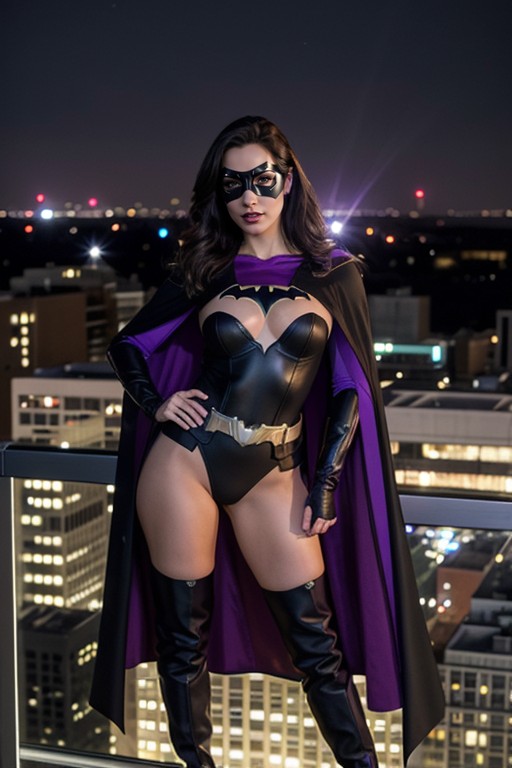 Dc Comics Huntress, Head To Toe View, Setting Is A City Rooftop AI Porn