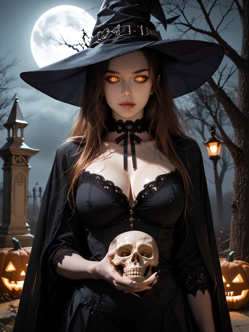 Holding A Skull, Trees In Background, Halloween Background AI Porn