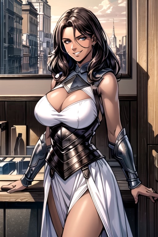 Pele Marrom Escura, Sorrindo, Vestido De Seda Pornografia de IA