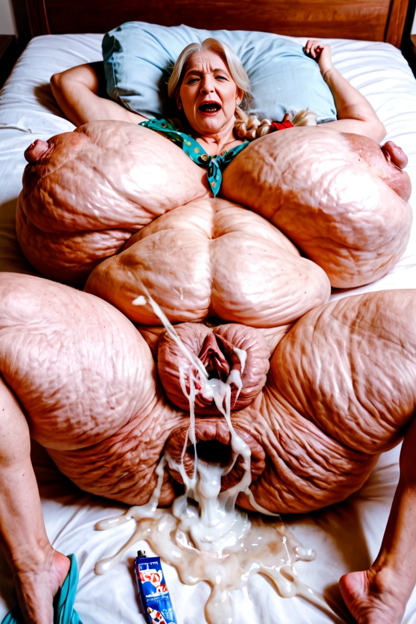 Vista Frontal, Hyper Extra Freakishly Gigantic Breasts, Hyper Freakishly Gigantic Morbidly Obese Belly Pornografia de IA