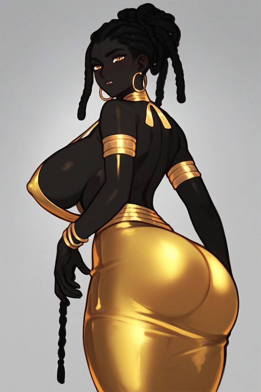 Very Long Dreadlocks Braid, Midnight Black Skin, Pitch Black Skin Pornografia de IA