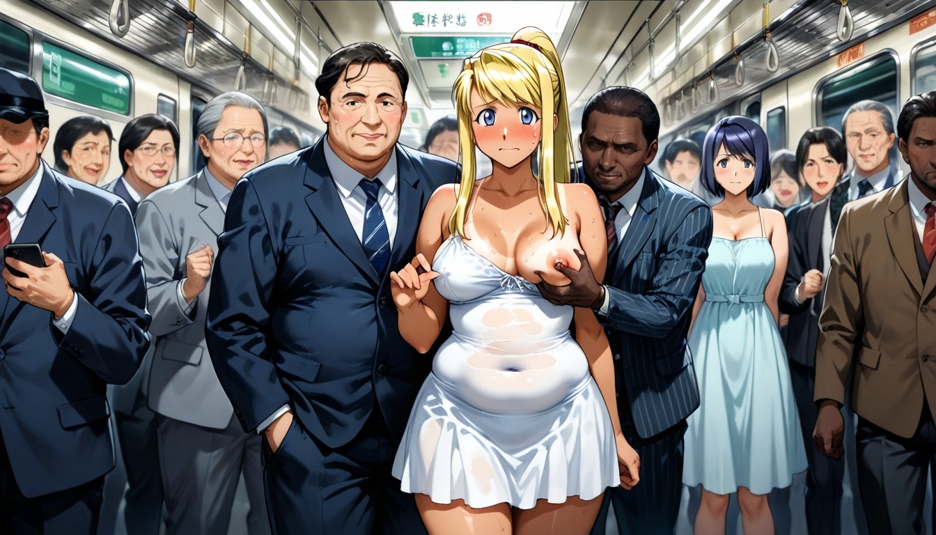 Winry Rockbell, Large African Man Pinching Her Nipple, Exposed Breast Pornografia de IA