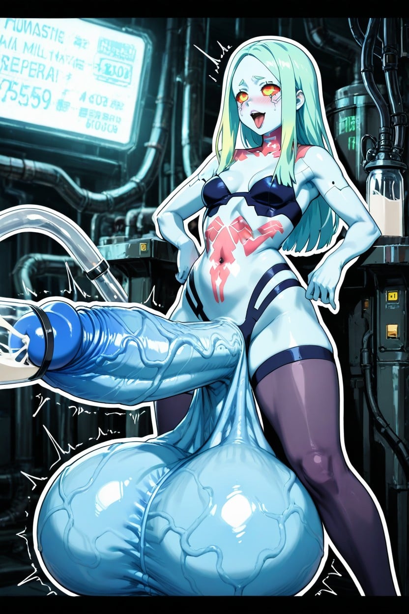 futanari rebecca cyberpunk getting milked,