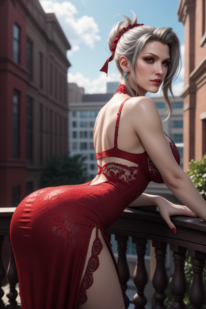 scarlet in final fantasy vii remake in her scarlet cosplay costume,