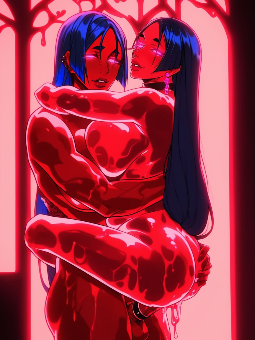 Soft Shading, Transparent Glowing Purple Neon Slime Hair, Soap Bubbles AI黄片