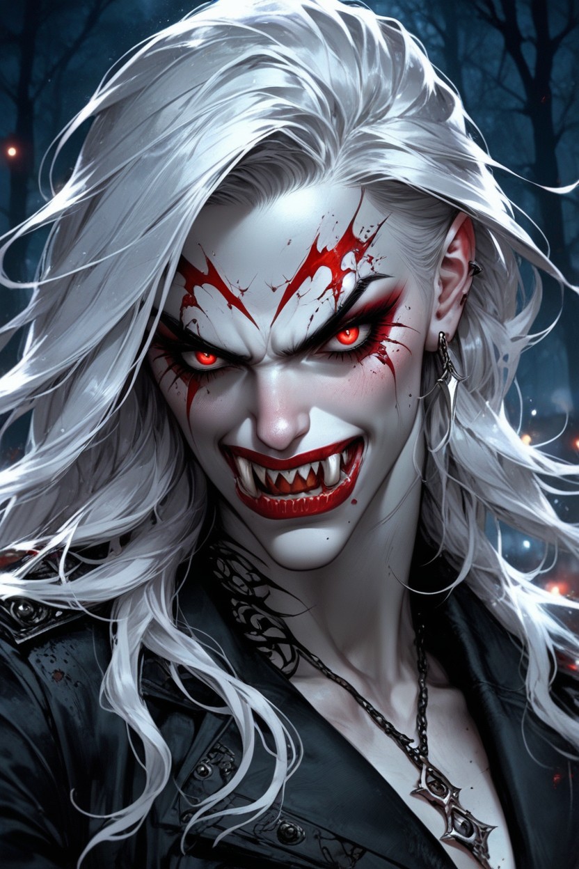vampire female biting a mans neck,