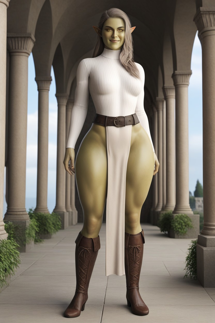 Beautiful Orc Face, Tight Medieval Shirt, Wide Hips AI黄片