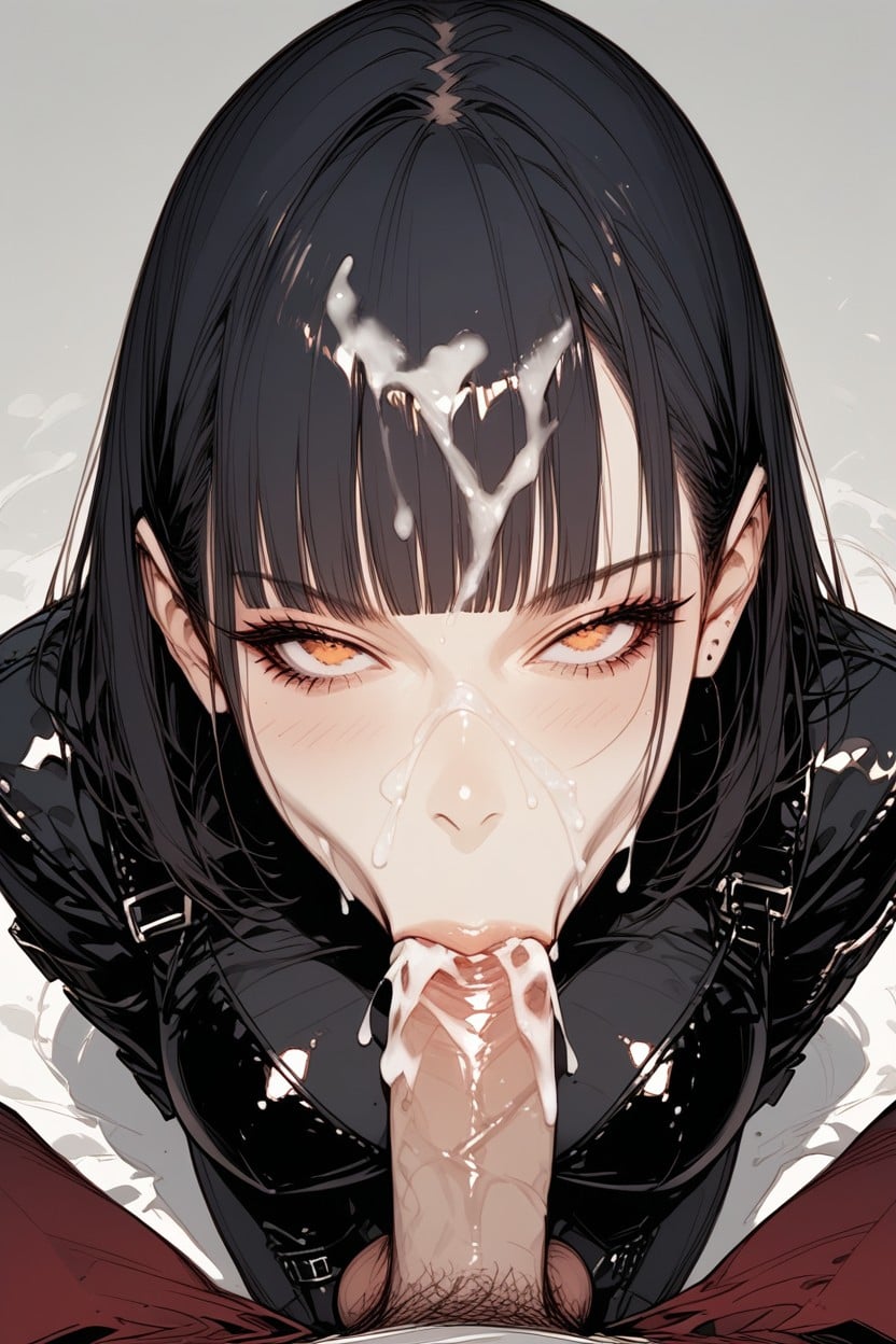 Her leather bodysuit and covered in semen.