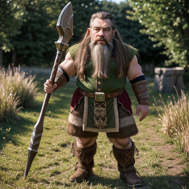 Grass Terrain Background, Original Dwarf From Homm, Holding A Hammer In Lifted Arm AI黄片