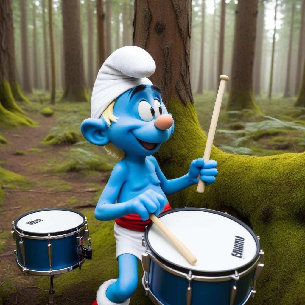 Comic About Male Papa Smurf Using Drumsticks To Play The Drums, 25+, Comic About A Papa Smurf Playing The Drum Kit Comic About Papa Smurf With Smug Expression Playing The Drum Kit In The Smurf Forest AI黄片