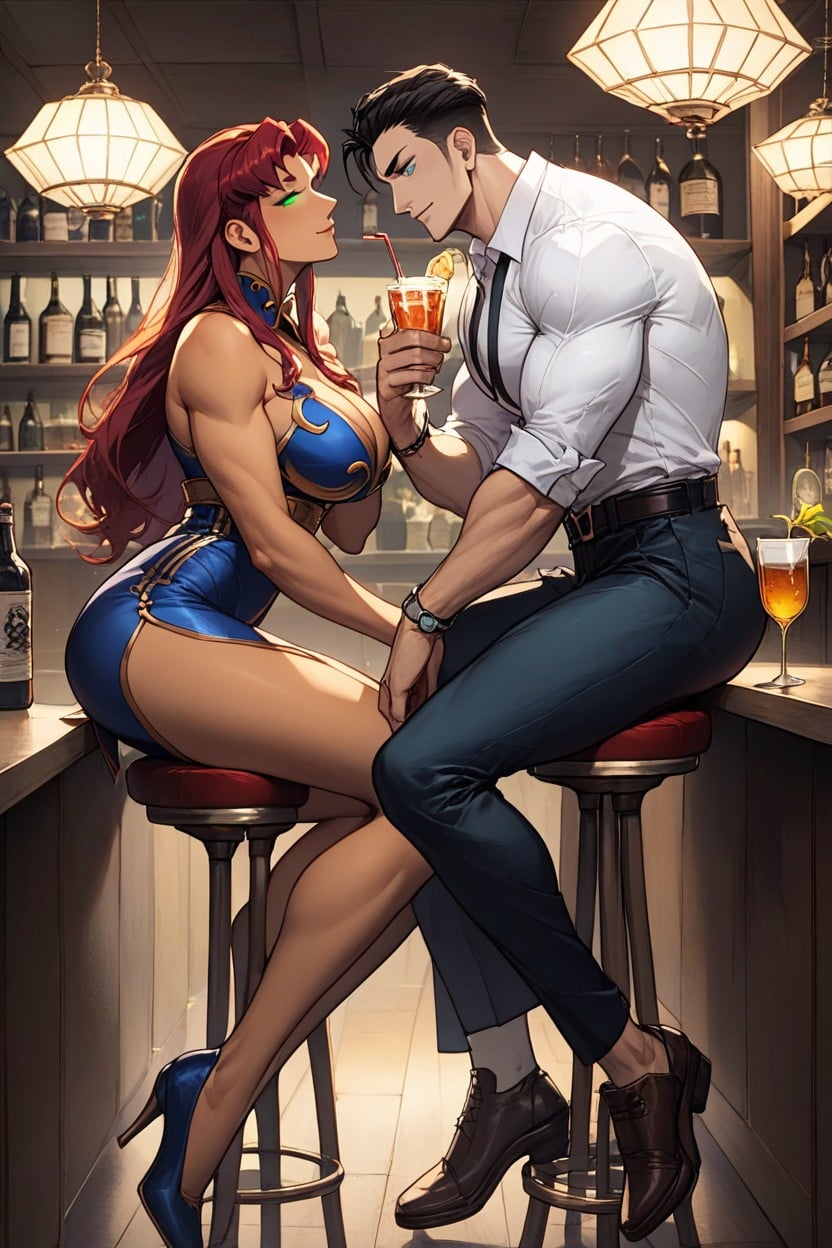 Starfire From Titan Cospayed As Chun Li, Full Body, Seduced By A Dark-haired Man Dressed As A Karateka AI黄片