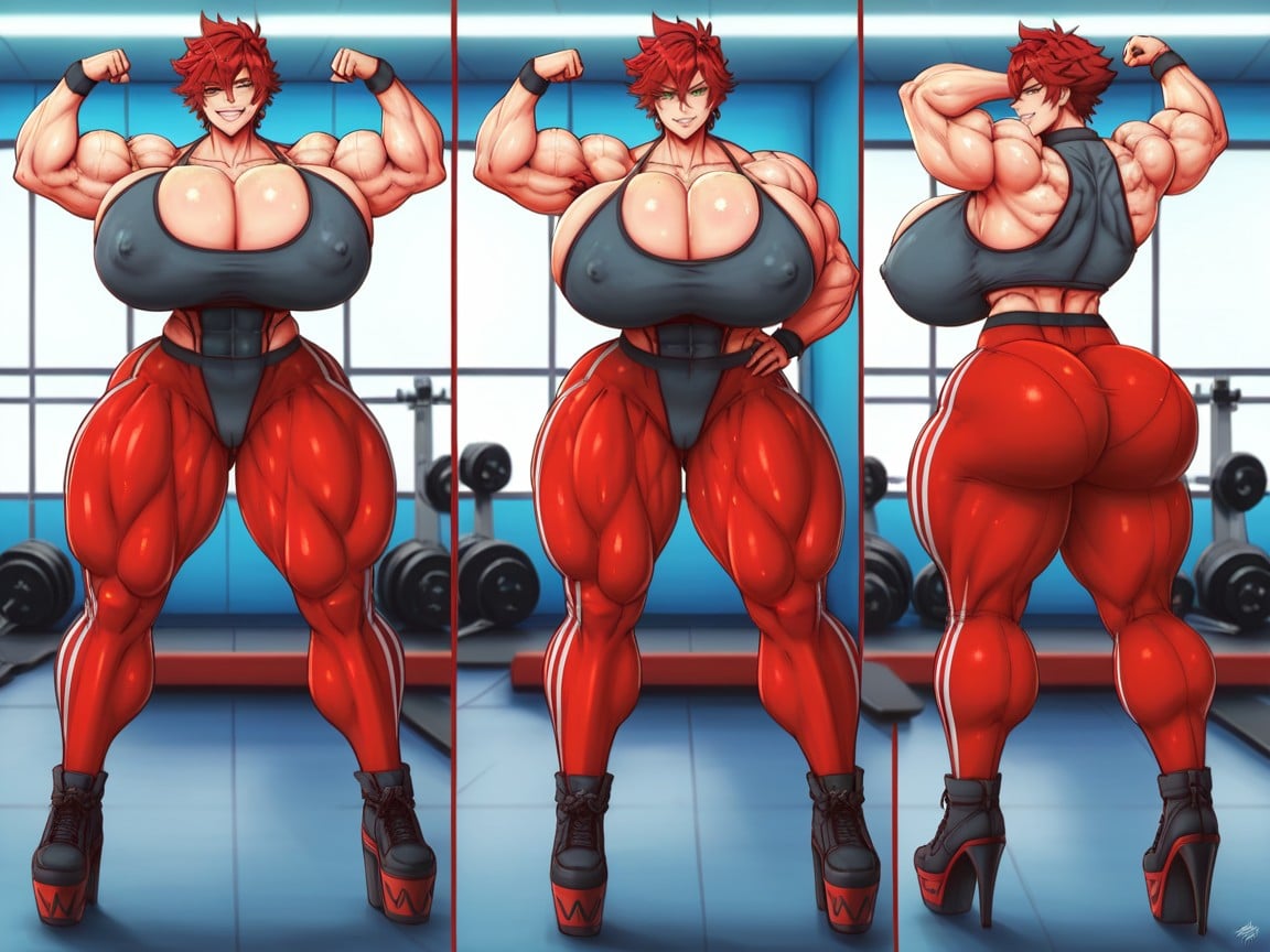 hyper massive muscles, bodybuilder, hyper muscular body, curvy body, voluptuous, gluteal sulcus, super wide hips, hyper gigic ass, extremely bottom heavy, enourmously huge ass, thicc thighs, massive thick hips, dumptrack, massive musclesmuscular mega massive muscles muscular mega female, gigic abs gigic tzius, muscular arms, gigic biceps, gigic pectoralis major, gigic latissimus, tomo aizawa, platform high heel boots, tomboy woman, hdr