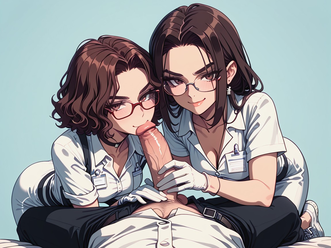 Dark Brown Eyes, One Male Doctor, Tight Dark Scrub Shirt Unbuttoned AI黃片