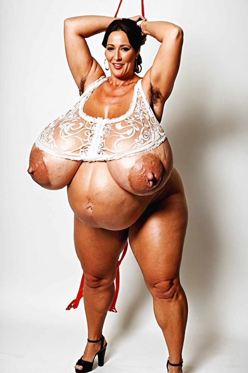 naked huge breasts, completely naked, naked body, hanging big belly, not pregnant, older milf, milf enjoying fucking her, milf and man, milf and, on milf, fucking her, pulling her hair, in milfs lap, white lace wearing boxers, full, curvy thighs, highly detailed hairy nipples, hands up, white control briefs, (giant super saggy breasts: 1.3), huge breasts, (extremely long saggy breasts: 1.3), massive saggy breasts, giant breasts, (saggy breasts: 1.3), massive saggy breast way bigger than, droopy breasts, (breasts larger than head: 1.3), veiny breasts, (enormous breasts: 1.3), big firm breasts, (breast expansion: 1.3), perky breasts, excessive big boobs, (large nipples: 1.3), huge large thick nipples, (huge nipples: 1.3), long nipples, enlarged nipples, swollen nipples, nipples engorged, nipples engorged thick, massively enlarged puffy nipples, black cotton, white pajama tank top, black high heels