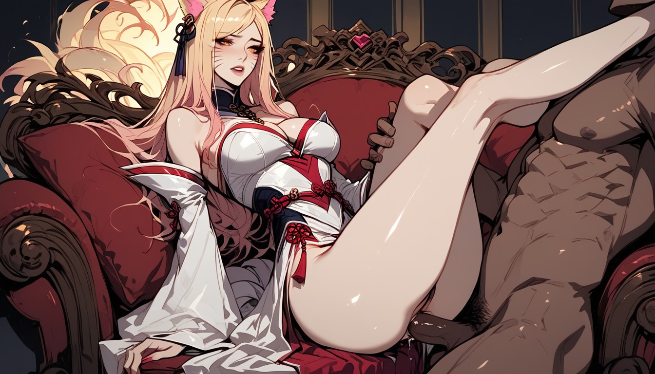 ahri from League of Legends . waist extremely long legs big ass. She crossed her legs and was picked up by a man from her back. anal sex,