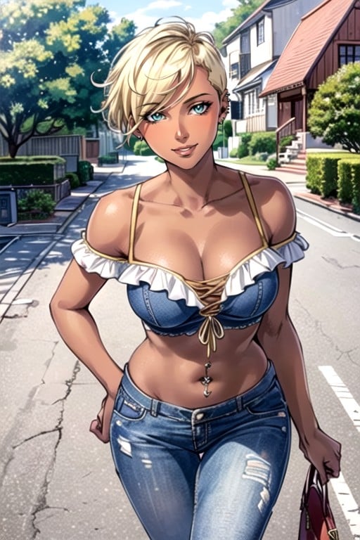 Off-shoulder, 上視角, Dark Brown Skin AI黃片